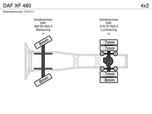 Rear axle: Tyre size: 315/70 R22.5; Tyre profile left inner: 7 mm; Tyre profile left outer: 8 mm; Tyre profile right outer: 7 mm; Tyre profile right outer: 7 mm